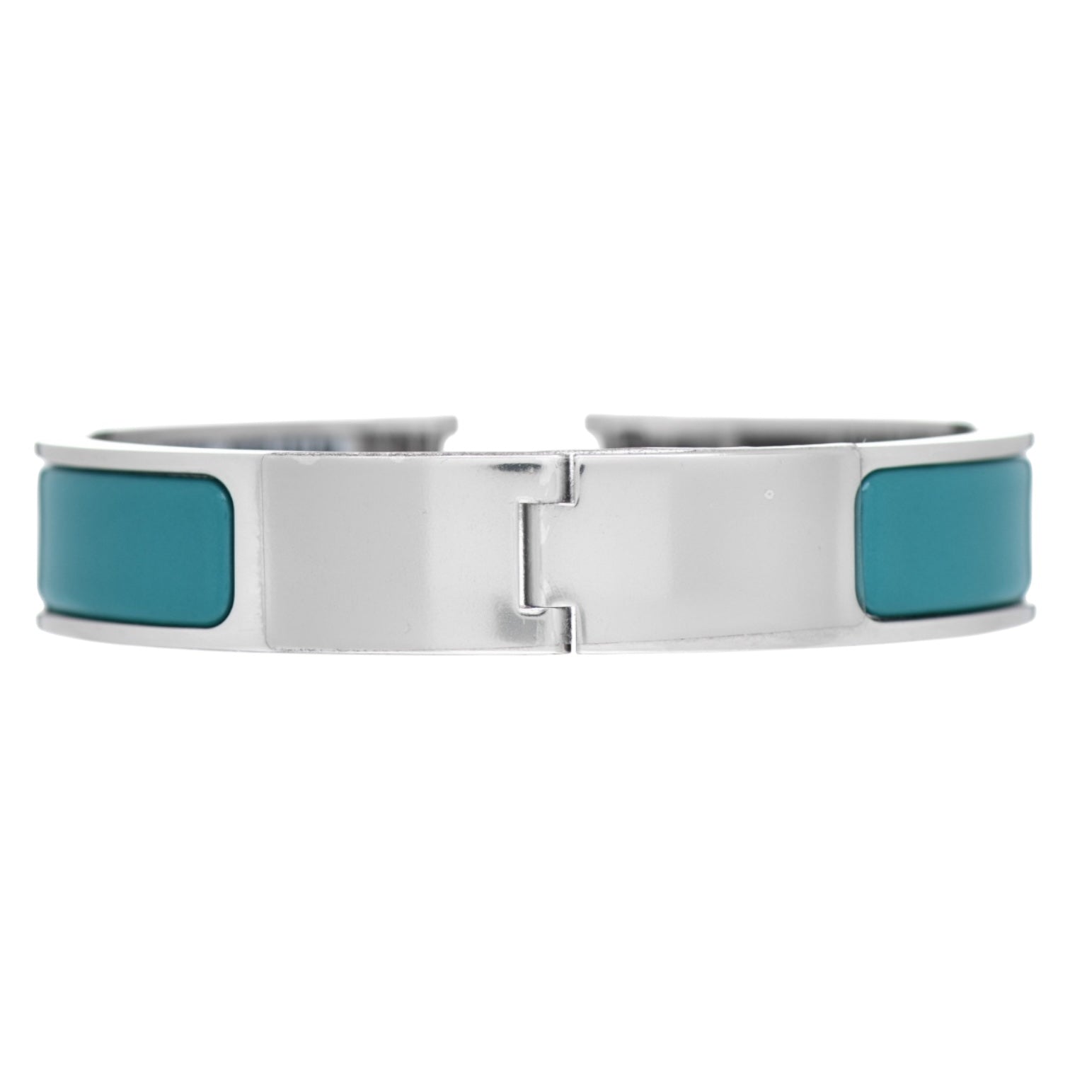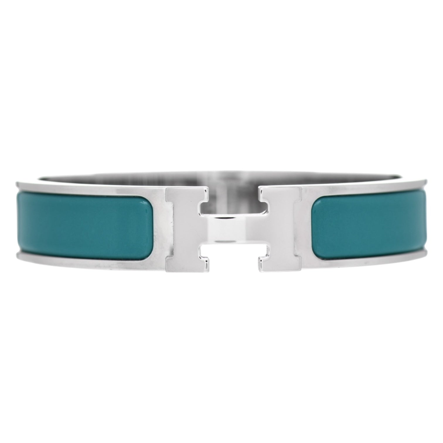 A signature Hermès accessory, this Clic Clac H bracelet is crafted in palladium-plated hardware with glossy Bleu Canard enamel. The sleek narrow design features the iconic "H" clasp closure, offering timeless elegance with a modern pop of color. A versatile piece that elevates any look, from casual chic to evening sophistication.