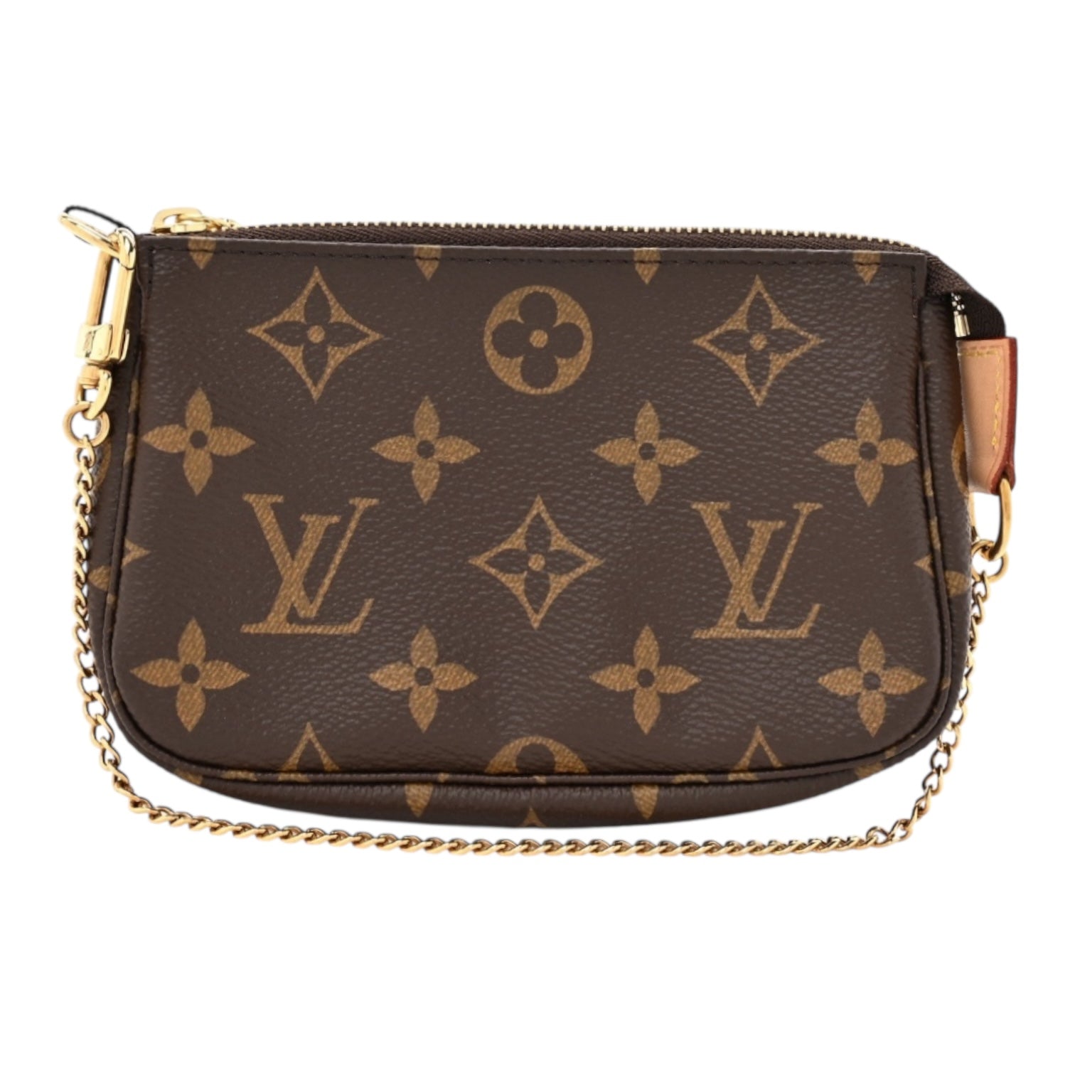 Crafted from Louis Vuitton’s signature Monogram canvas, this Mini Pochette Accessoires is a timeless and versatile piece. Featuring a gold-tone chain strap and top zip closure, it’s perfectly sized to hold small essentials or to slip inside a larger bag. The natural cowhide leather tab adds a classic LV touch — effortlessly chic for both day and evening use.