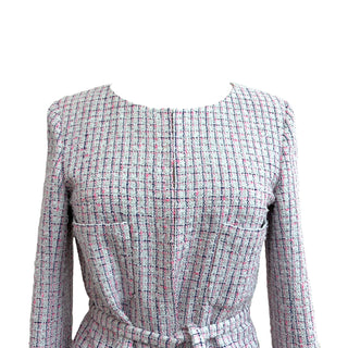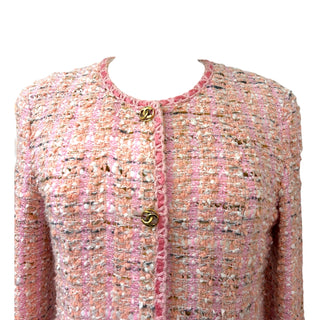 Chanel Pink Bouclé Tweed Cardigan Jacket With Textured Rainbow Trim