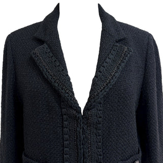 Chanel Black Lambskin Leather Jacket With Tonal Heart Logo Embroidery And Patch Pockets