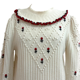 Chanel Cream Embroidered Rose Motifs Knit Sweater with Matching Leg Warmers