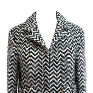 Chanel Navy & White Houndstooth Tweed Jacket with Knit Underlay Sleeves