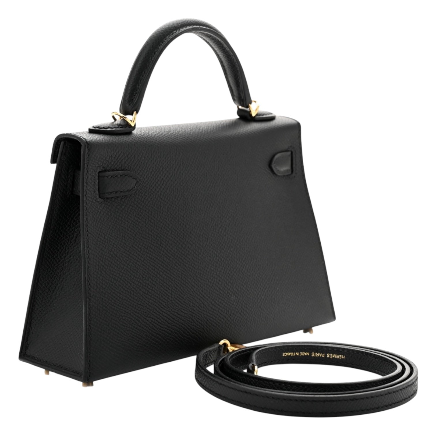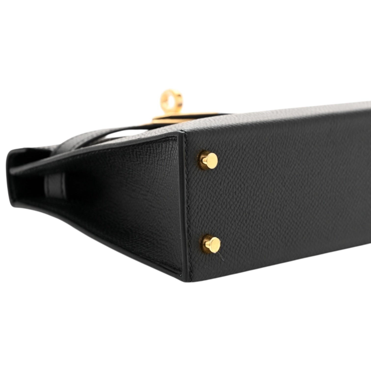 A true icon of elegance, this Hermès Mini Kelly Sellier 20 is crafted from Noir Epsom leather and finished with gleaming gold-plated hardware. The structured Sellier silhouette accentuates its refined shape, while the meticulous hand-stitching showcases Hermès’ unparalleled craftsmanship.