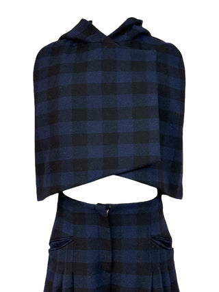 Christian Dior Navy Checkered Hooded Cape & Pleated Trouser Set