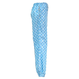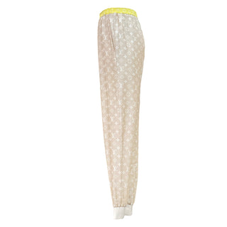 Louis Vuitton Beige Monogram Silk Jogger Pants with Yellow Waistband