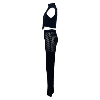 Christian Dior Black Crochet Lace Crop Top & Trousers 2 Pieces Set