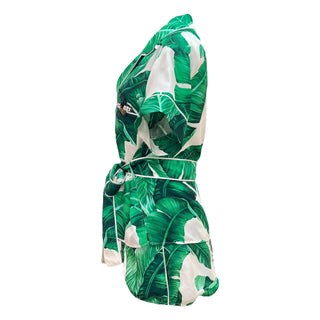 Dolce & Gabbana Banana Leaf Print Silk Belted Shirt and Shorts Set