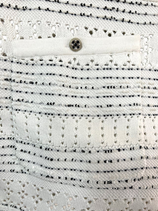Chanel White Textured Diamond Quilted Bomber Jacket with Contrast Trim