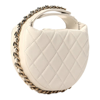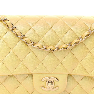 Chanel White Tweed Double Flap Bag With Gold Glitter Trim Detailing