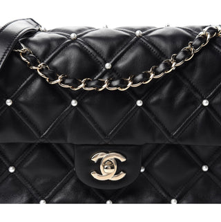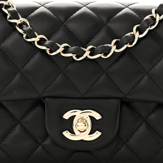 Chanel Black Lambskin Quilted Mini Rectangular Flap Bag With Gold Hardware