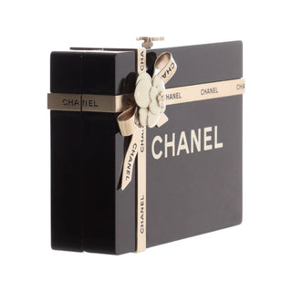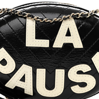 Chanel Black Lambskin Embroidered Chevron Quilted La Pausa Tassel Clutch