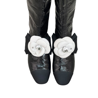 Chanel Black Lambskin Quilted Mini Chocolate Bar Camellia Flap Bag With Gold Hardware
