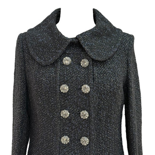Chanel Black Metallic Tweed Double-Breasted Jacket with Jewel Buttons