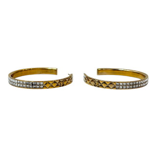 Chanel Gold-Tone Camellia Flower Clip On Earrings With Crystal CC Logo