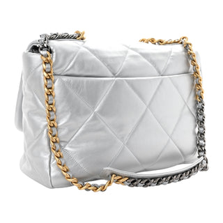 Chanel Silver Metallic Grained Calfskin Quilted Large Casual Rock Backpack