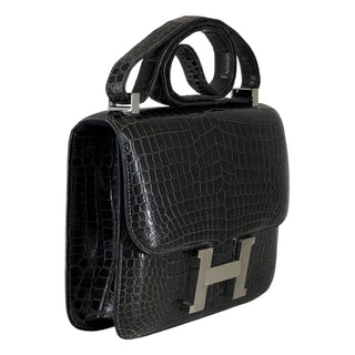 Hermes Black Madame & Shiny Alligator Touch Mini Kelly II 20 With Gold Hardware