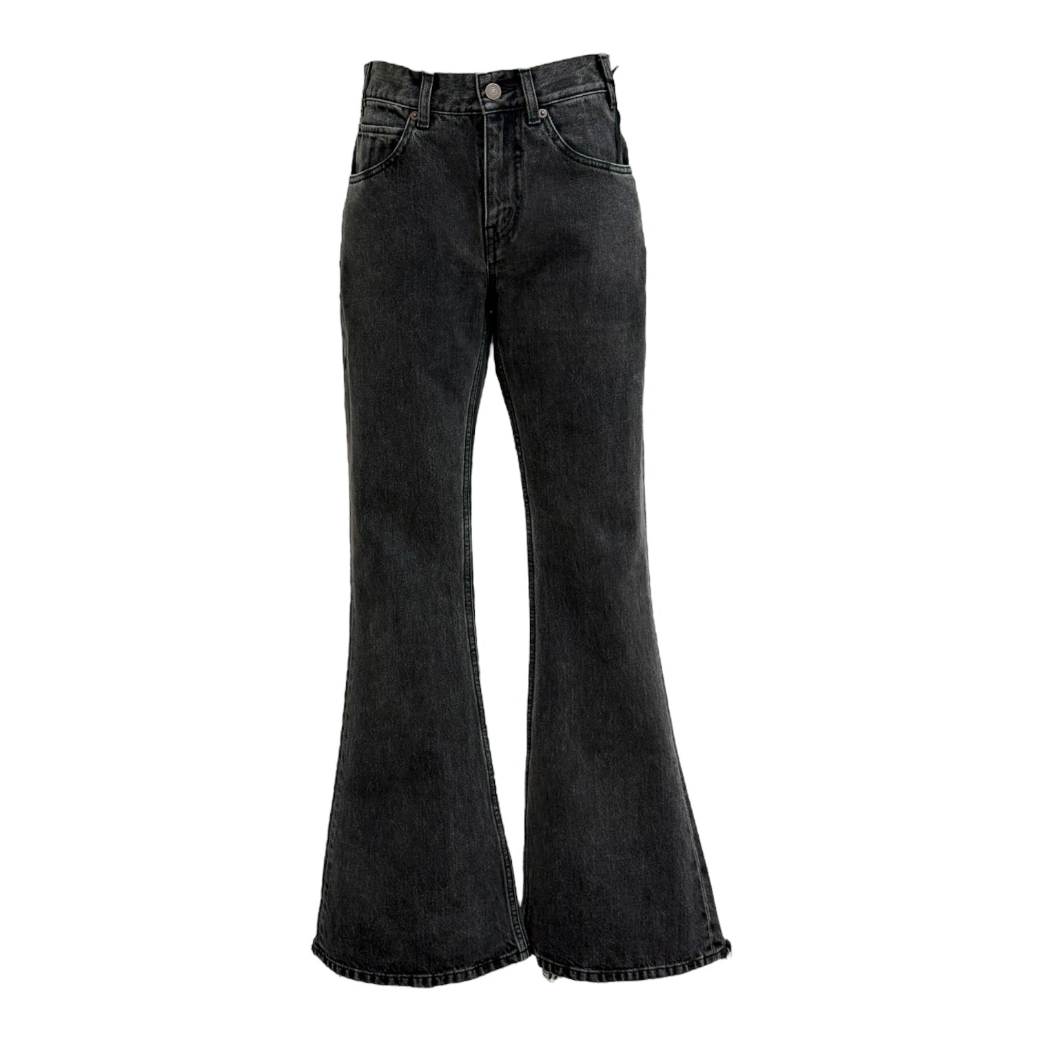 These Celine jeans capture the house’s timeless Parisian edge with a modern silhouette. Crafted from premium black denim, the design features a high-rise waist and a flattering flared leg that elongates the figure. The washed finish adds a subtle vintage touch, making them perfect for both casual and elevated looks.