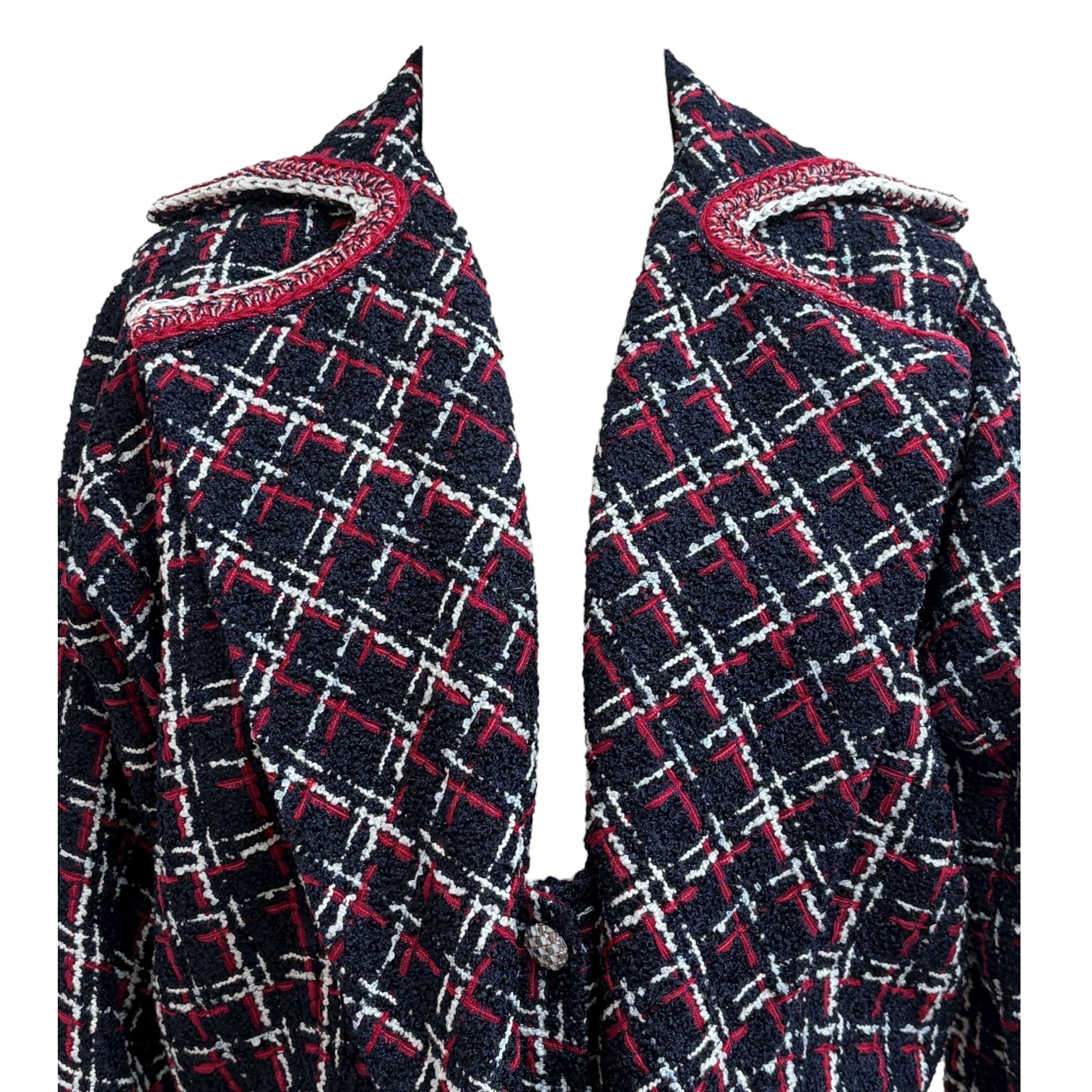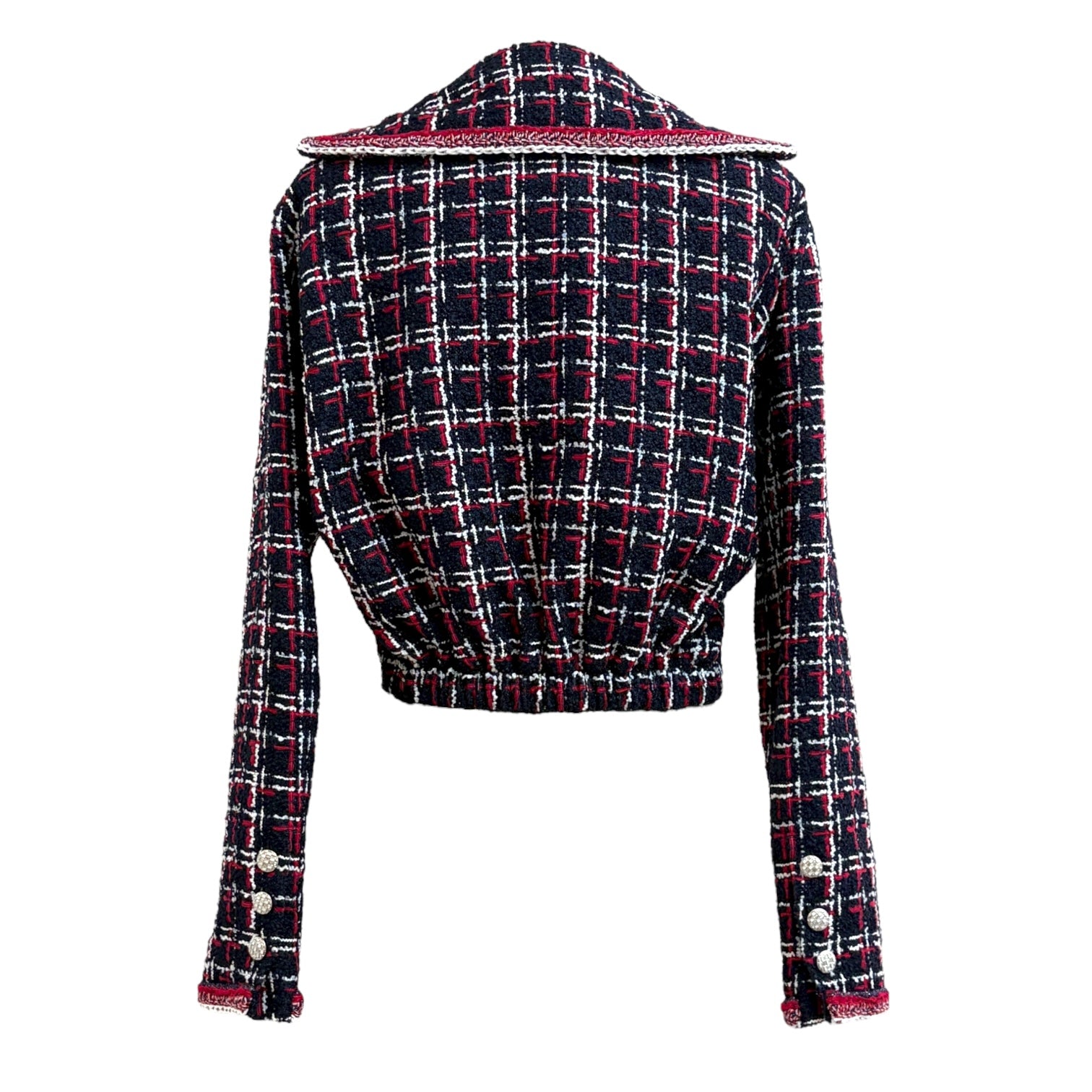 Chanel Navy Red & White Checked Tweed Tie-Front Jacket