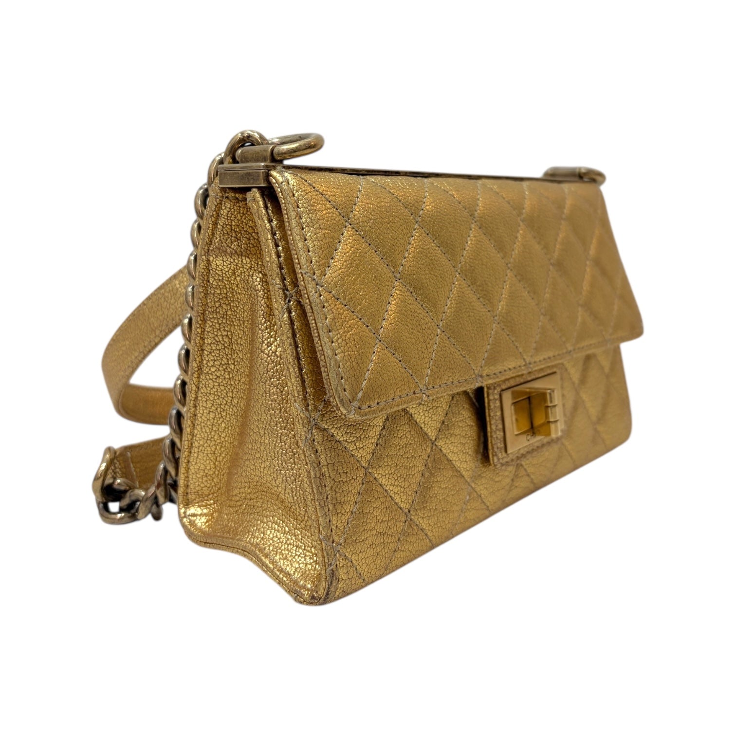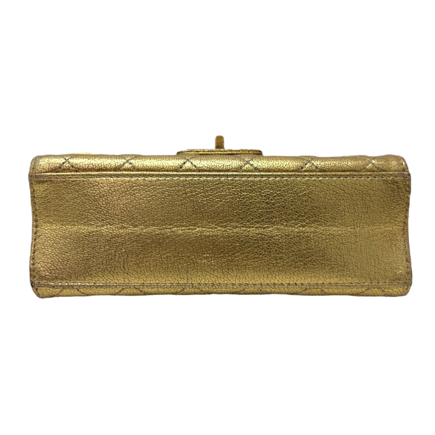 This dazzling Chanel Small Rita Flap Bag embodies timeless glamour with its metallic gold quilted leather and elegant tone-on-tone gold hardware. Featuring a structured silhouette, signature rectangular turn-lock closure, and interwoven chain strap, this piece captures the essence of Chanel sophistication with a radiant twist. Perfect for evening occasions or elevating daytime looks, this bag adds a touch of Parisian luxury to any ensemble.