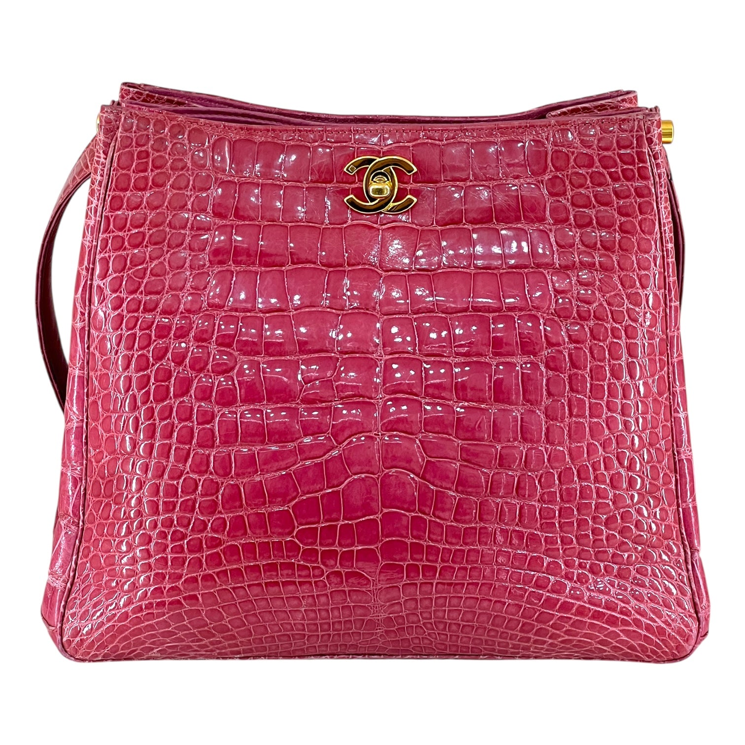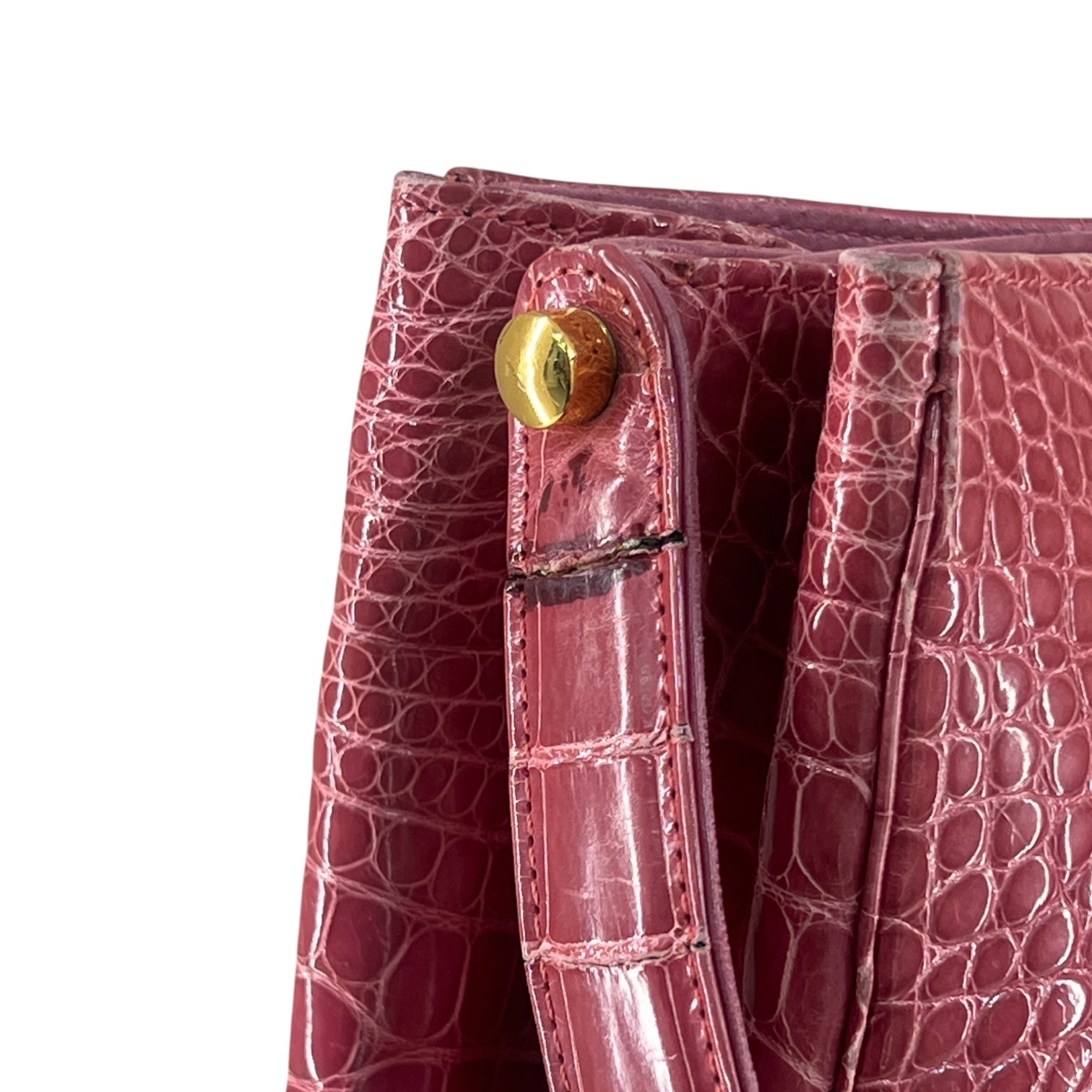 Chanel Vintage Pink Crocodile Medium Kelly Shoulder Bag With Gold Hardware