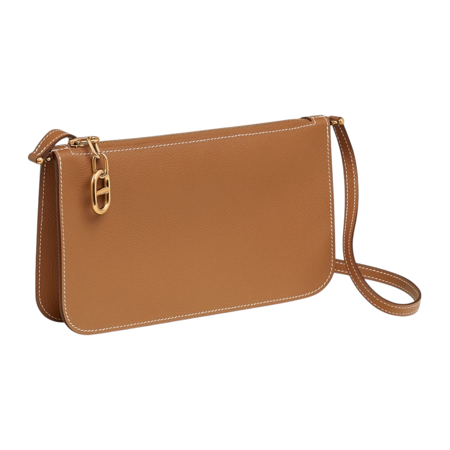 Understated and impeccably crafted, this Hermès Chaine d’Ancre To Go Pochette is rendered in the house’s signature “Gold” shade — a warm caramel tone that epitomizes timeless elegance. Made from finely textured Zipengo leather, known for its soft sheen and structured durability, the design is both luxurious and practical.