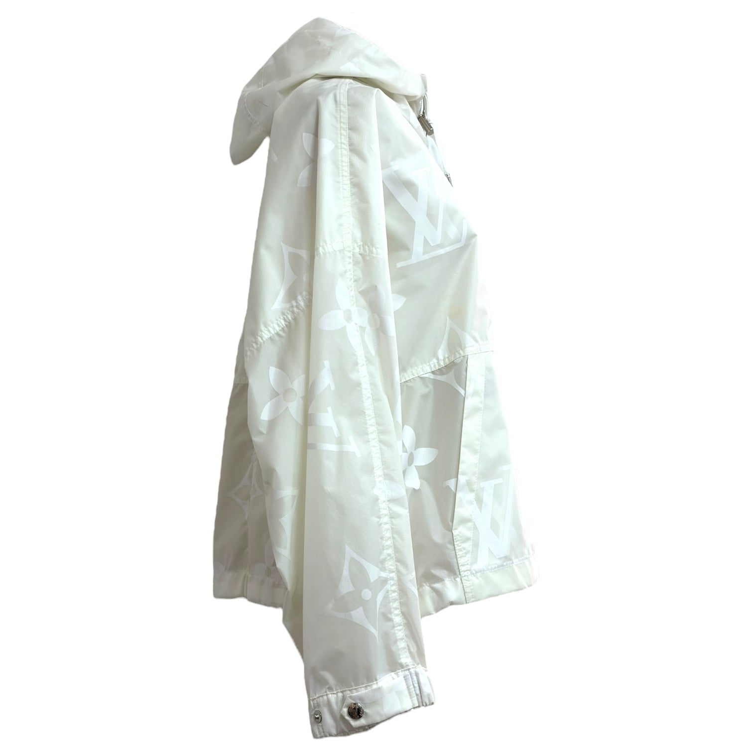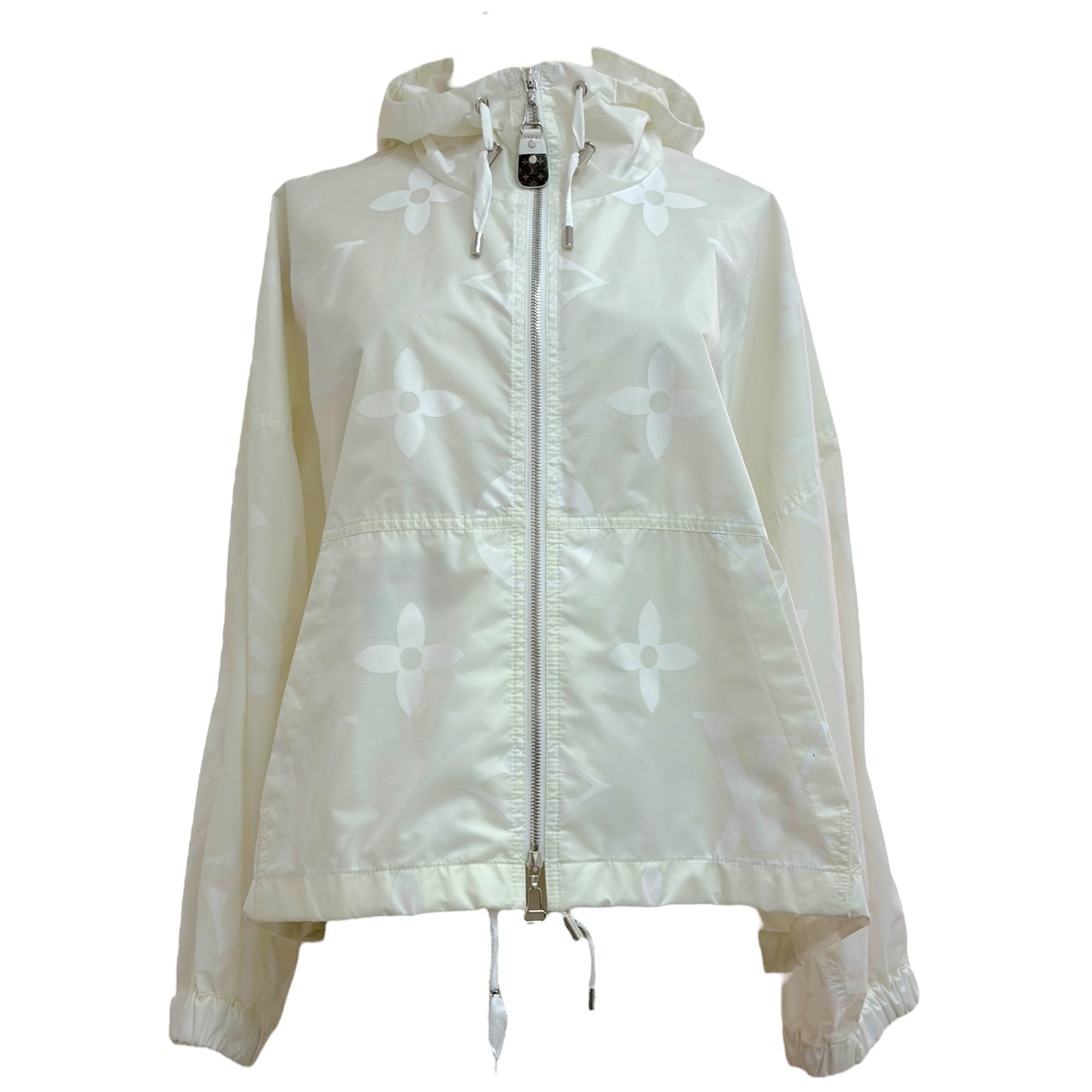 This Louis Vuitton Night Glow jacket combines technical sophistication with understated luxury. Crafted from lightweight, water-repellent fabric, the jacket features an all-over tonal Monogram motif that subtly illuminates under light for a luminous effect. Designed with a relaxed silhouette, it includes a drawstring hood, double-zip front closure, elastic cuffs, and adjustable hem for a customizable fit. The signature LV padlock zip pull adds a touch of refined detail, blending function and fashion in true Louis Vuitton style — perfect for elevated casual wear or travel.